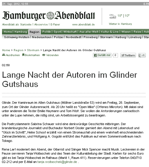 Rena Larf und Wolfgang A. Gogolin - Glinder Autorennacht 2012 im Gutshaus Glinde