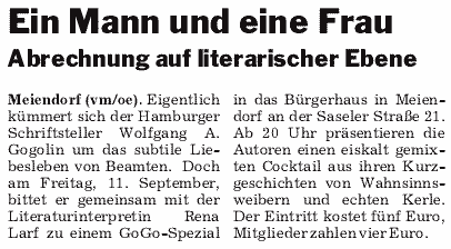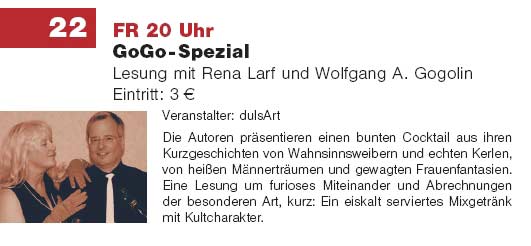 Rena Larf & Wolfgang A. Gogolin präsentieren ihr Literaturprogramm 'GoGo-Spezial'