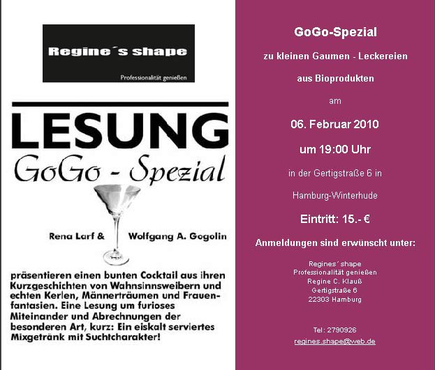 Gogo-Spezial live am 6.2.2010 in Regine's Shape in der Hamburger Gertigstrasse Ein ausführlicher Bericht mit vielen Fotos hier auf der Seite von Rena Larf